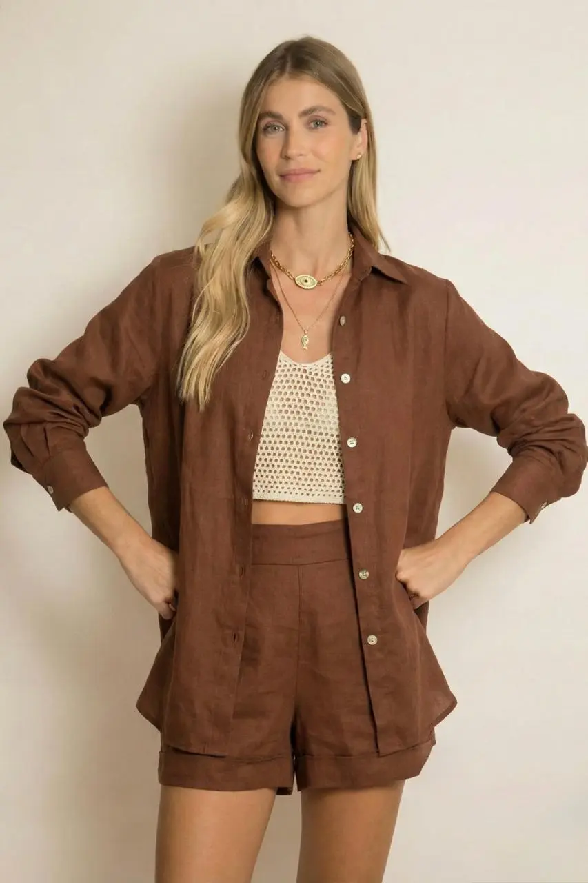 As peças traduzem essa mistura única em tramas feitas à mão, bordados e tie-dyes exclusivos que dialogam com modelagens sofisticadas e atemporais. O contraste de tons vibrantes, como laranja e coral, e neutros de impacto, como o off e marrom, reforçam a potência do encontro entre cultura, natureza e estilo.