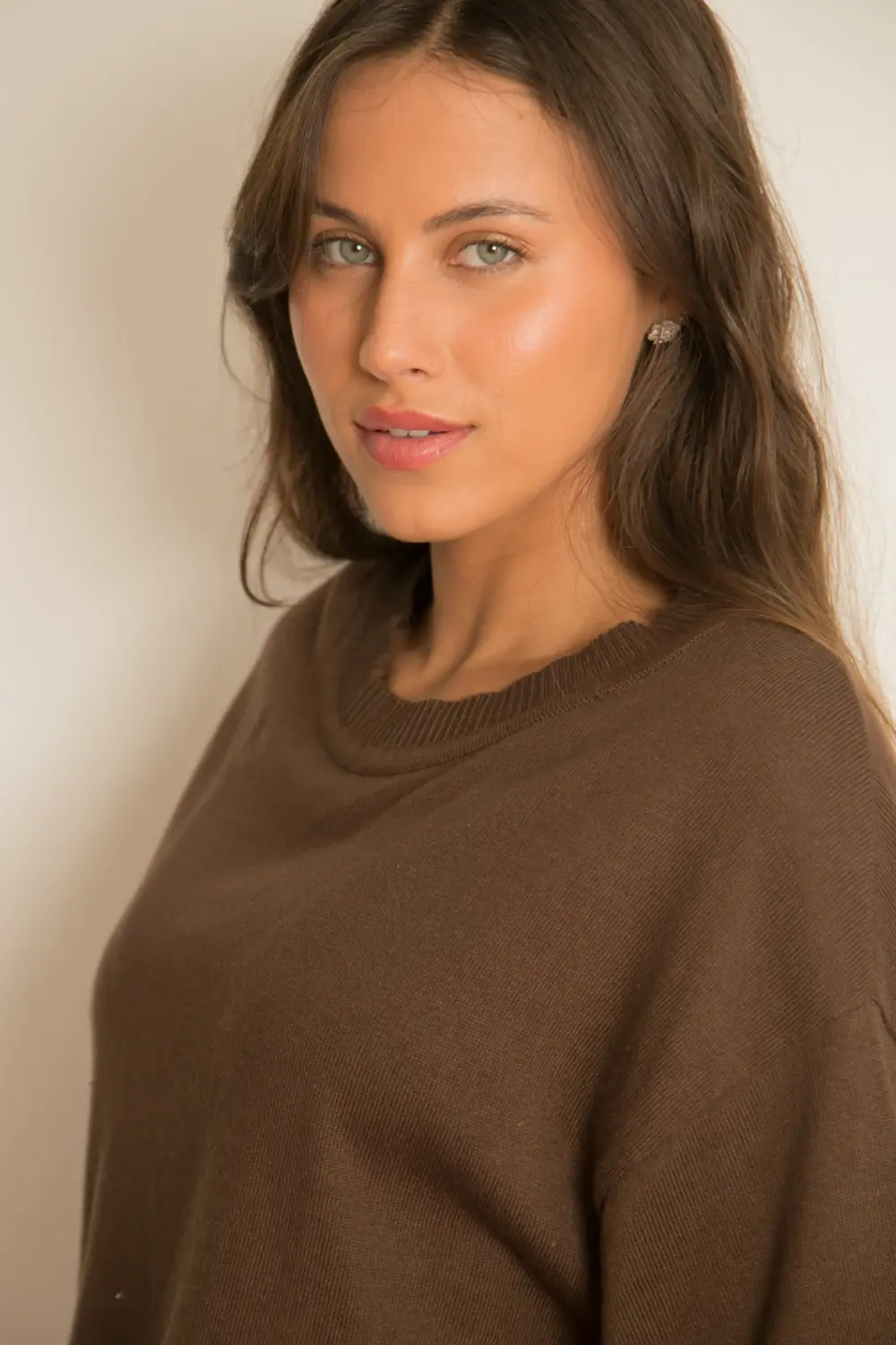 A t-shirt maxi tricot tem modelagem ampla, caimento solto, moderna e descomplicada.